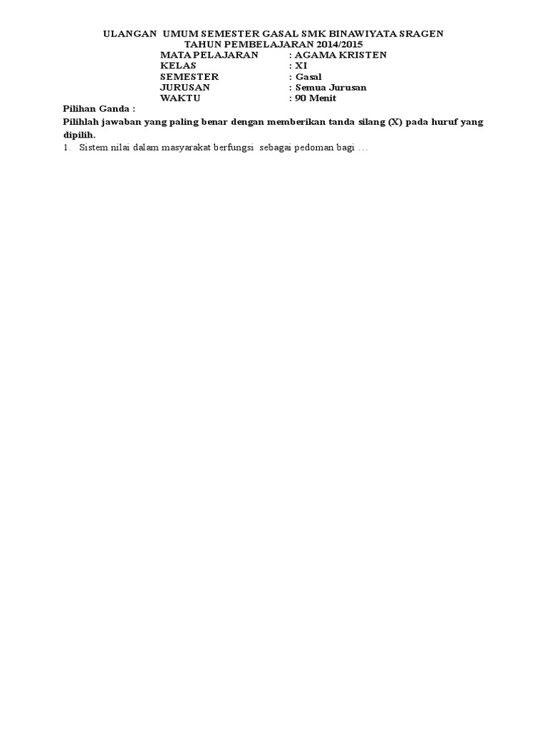 Soal Soal Latihan Ukk Agama Kristen Beserta Jawabannya Kelas Xi from imgv2-2-f.scribdassets.com Maybe you would like to learn more about one of these? Check spelling or type a new query. Soal agama kristen semester ganjil kelas 11. We did not find results for: