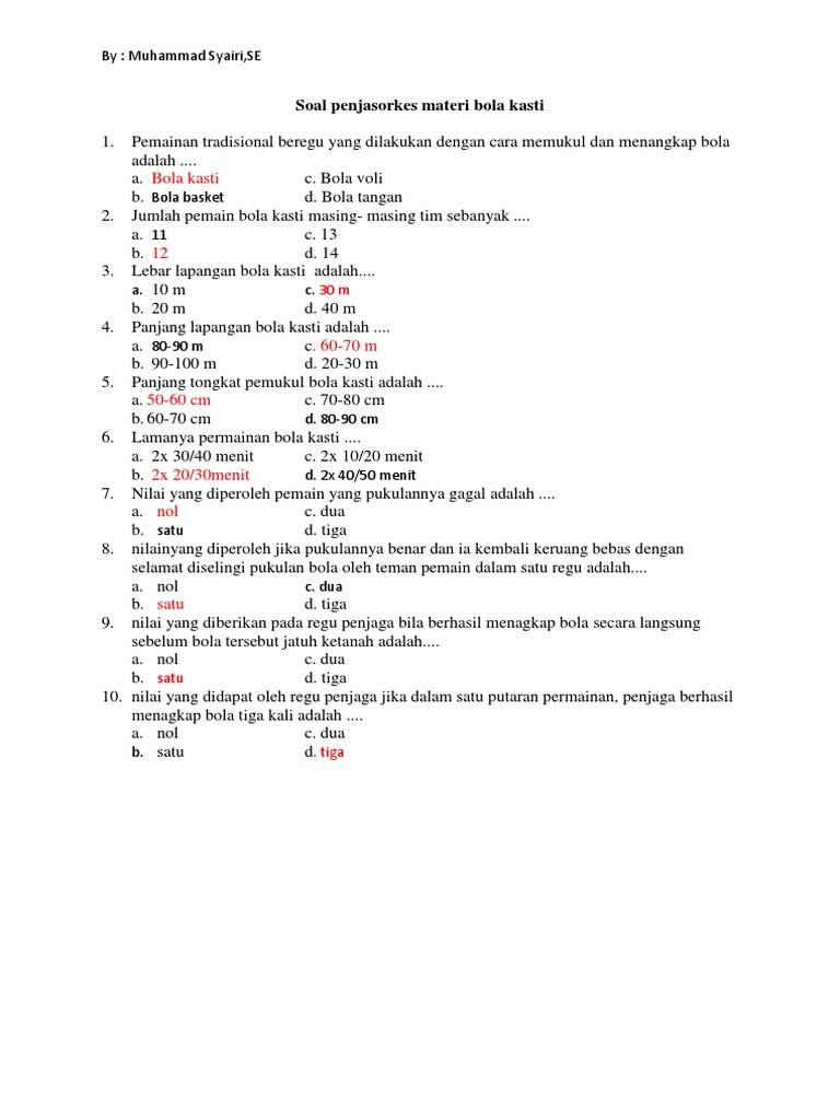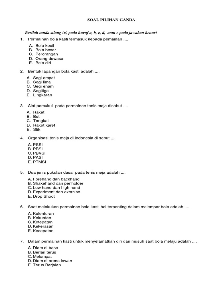 Admin berbagi contoh soal juga mengumpulkan gambar gambar lainnya terkait contoh soal seni budaya. Kasti merupakan salah satu jenis permainan bola kecil beregu. Berikut ini yang termasuk teknik dasar permainan bola kasti adalah. Berapa pemain yang dibutuhkan dalam permainan bola basket. Angebote entdecken und ohne anmeldung sofort beim händler anfragen. Contoh soal bola kasti pilihan ganda dan jawaban bola kasti rounders adalah salah satu capang olah raga yang di mana permainan ini adalah menggunakan bola kecil dengan demikian olah raga ini dalam permainannya di lakukan dengan beregu karena untuk menjaga kekompakan dalam memainkannya. Latihan soal pjok kelas 5 (permainan kasti) draft. Kasti merupakan bentuk permainan tradisional yang mengutamakan beberapa unsur kekompakan, ketangkasan dan kegembiraan. Dalam permainan kasti jumlah pemain tidak harus 12 orang, bisa dikurangi atau ditambahi sesuai kebutuhan dan lebar lapangan. Soal soal pilihan ganda materi bola kasti. Soal & kunci jawaban latihan usbn ipa kelas 6 sd, jelaskan pengaruh gaya pada permainan bola kasti berikut ini adalah penjelasan soal dan kunci jawaban latihan usbn pelajaran ipa kelas 6 sd/mi bagian pilihan ganda dan essay. Perhatikan teknik dasar dari permainan bola kasti berikut. Dalam permainan bola kasti, jika pemain bisa memukul bola dengan keras dan bisa langsung kembali ke arena bebas akan memperoleh nilai ….