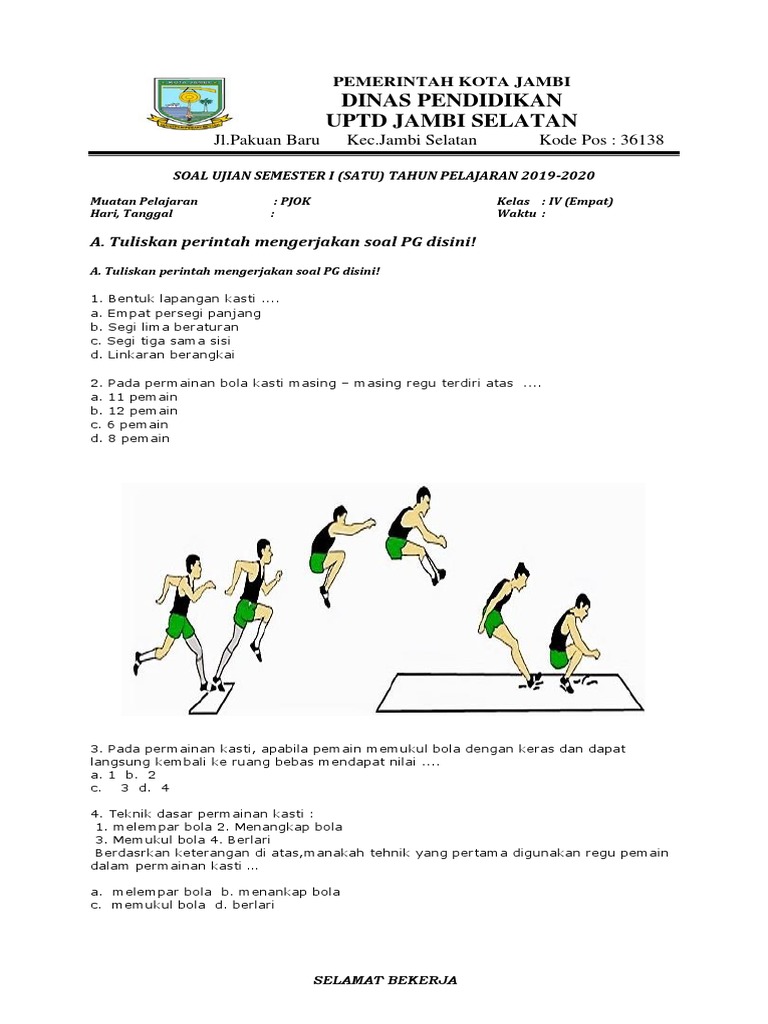 Soal pjok kelas 4 semester 1 materi tentang permainan kasti sesuai kurikulum 2013. Detail soal dan jawaban tentang bola kasti pdf dapat kamu nikmati dengan cara klik link download dibawah dengan mudah tanpa iklan yang mengganggu. Pada kesempatan kali ini kami akan memberikan contoh soal pendidikan jasmani untuk semester 1. 2 x 10/20 menit d. Selalu kunjungi portal edukasi untuk rangkuman materi lainnya ya. Dalam permainan kasti jumlah pemain tidak harus 12 orang, bisa dikurangi atau ditambahi sesuai kebutuhan dan lebar lapangan. Bola kasti yang mengalami impuls paling besar adalah. 2 x 20/30 menit c. 1 b 11 a 21 c 31 a 41 c 2 c 12 d 22 b 32 e 42 b 3 a 13 c 23 c. Gerak lokomotor dalam permainan kasti adalah berlari dan berjalan, seperti meliuk, mengayun dan menekuk. Jelaskan pengertian permainan bola kasti ! Contoh soal bola kasti pilihan ganda dan jawaban bola kasti rounders adalah salah satu capang olah raga yang di mana pendidikan jasmani bola tangan rohani. Saat datangnya bola kita sambut dengan telapak kaki adalah.