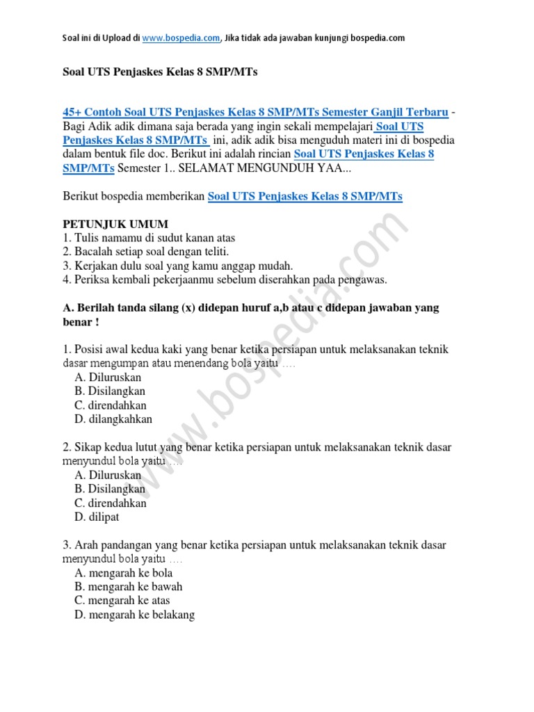 Soal Uts Penjaskes Smp Kelas 8 from i0.wp.com Maybe you would like to learn more about one of these? Check spelling or type a new query. We did not find results for: Soal dan jawaban penjaskes kelas 8.