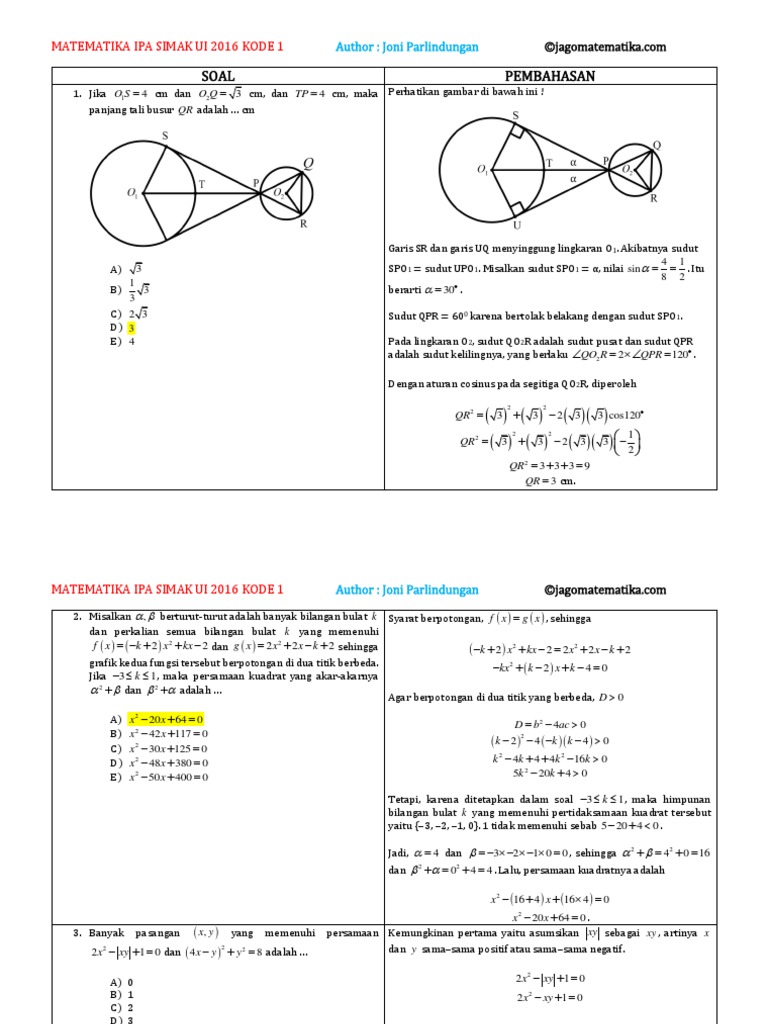 Latihan soal simak ui matematika dasar dan pembahasan. Soal dan pembahasan persamaan trigonometri bentuk a.sin x + b.cos x = c. Nilai minimum dari fungsi pada himpunan penyelesaian dari sistem pertidaksamaan : Pernyataan berikut yang benar mengenai. (d) jika ac = 0, maka salah satu berlaku a. Berikut persebaran tiap materi pelajarannya, diurutkan dari jumlah kemunculan soal simak ui yang paling banyak: Kali ini yang akan saya bagi adalah soal dan pembahasan matematika dasar simak ui 2018 kode 638.soalnya saya peroleh dari teman saya guru yang baik yaitu bapak insan abdul syukur dan saya sangat berterima kasih kepada beliau yang bersedia menyedekahkan paket datanya untuk mengirimkan foto soal ini. Matematika paling banyak muncul : Peluang, persamaan kuadrat, fungsi komponen dan invers, barisan dan deret, pertidaksamaan, sistem persamaan linear dan kuadrat, logaritma, matriks. Soal matematika dasar sbmptn 2017. Jadi, nilai minimumnya adalah 6. Lihat semua pos dari gulamhalim. Karena bukan bulat, maka yang memenuhi adalah.
