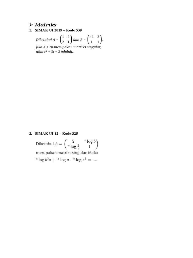 untuk "Soal Matriks Simak Ui - Bimbingan Alumni Ui A Twitter Soal Matematika Ipa Simak Ui 2018 Bimbingan Alumni Ui Https T Co Cderlonzrl Twitter : Latihanmat in matriks july 5, 2012."