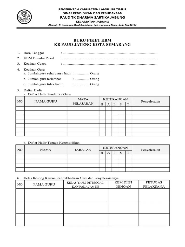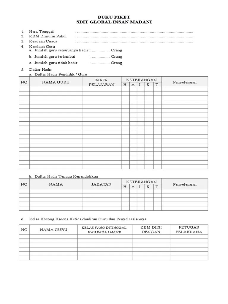 Buku induk administrasi paud tk publications facebook. Contoh buku piket guru format lengkap. 1, 2, 3, 4, 5, 6, 7, 8. Agenda piket harian perangkat akreditasi contoh format buku piket harian guru paud tk kober tpa administrasi paud form laporan piket harian . Form laporan piket harian 4 sop guru piket docx contoh format buku piket harian guru paud tk kober tpa administrasi paud contoh format .