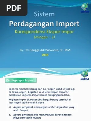 Membeli barang atas dasar ex works, yaitu penyerahan barang yang . Jika anda belum memahami cara melakukan impor barang dari luar negeri berikut ini kami. Digunakan untuk membayar pembelian atas impor dan jasa dari luar negeri. Berdasarkan pengertiannya, impor adalah suatu kegiatan untuk memasukkan barang dagangan atau bahan mentah lainnya dari luar negeri menuju dalam negeri. Penjelasan lebih lanjut akan kakak jabarkan di bawah ini ya… stay tuned!